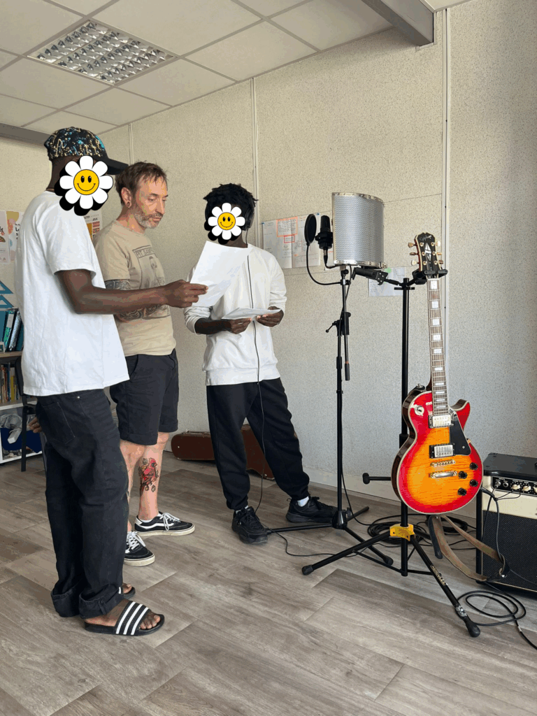 Lors d’un atelier de prise de son animé par Clara Lacombe, sept jeunes de l’ADATE ont joué avec les micros et se sont confiés sur la difficulté de l’attente, l’importance de la scolarité et leurs projets d’avenir.